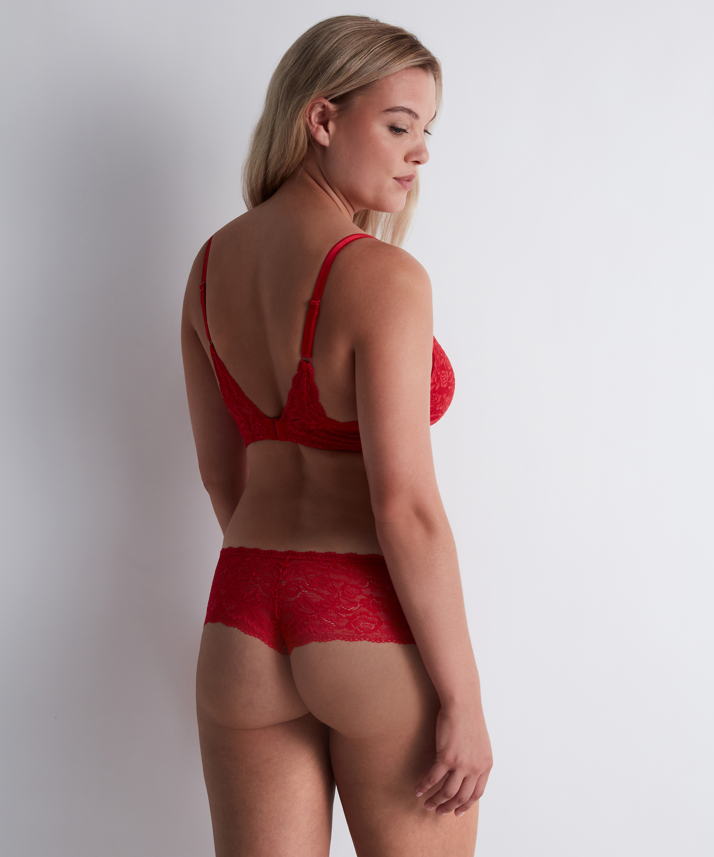 De Aubade Rosessence voorgevormde plunge bh is gemaakt van gerecycled materiaal en volledig overtrokken met sensueel kant. Tussen de cups zit een gouden kristallen detail. De randen van de cups en het onderste gedeelte van de schouderbandjes zijn afgewerkt met elastisch kant. Door de voorgevormde cups worden de borsten mooi naar voren gecentreerd. Combineer deze bh met een van de bijpassende slips.