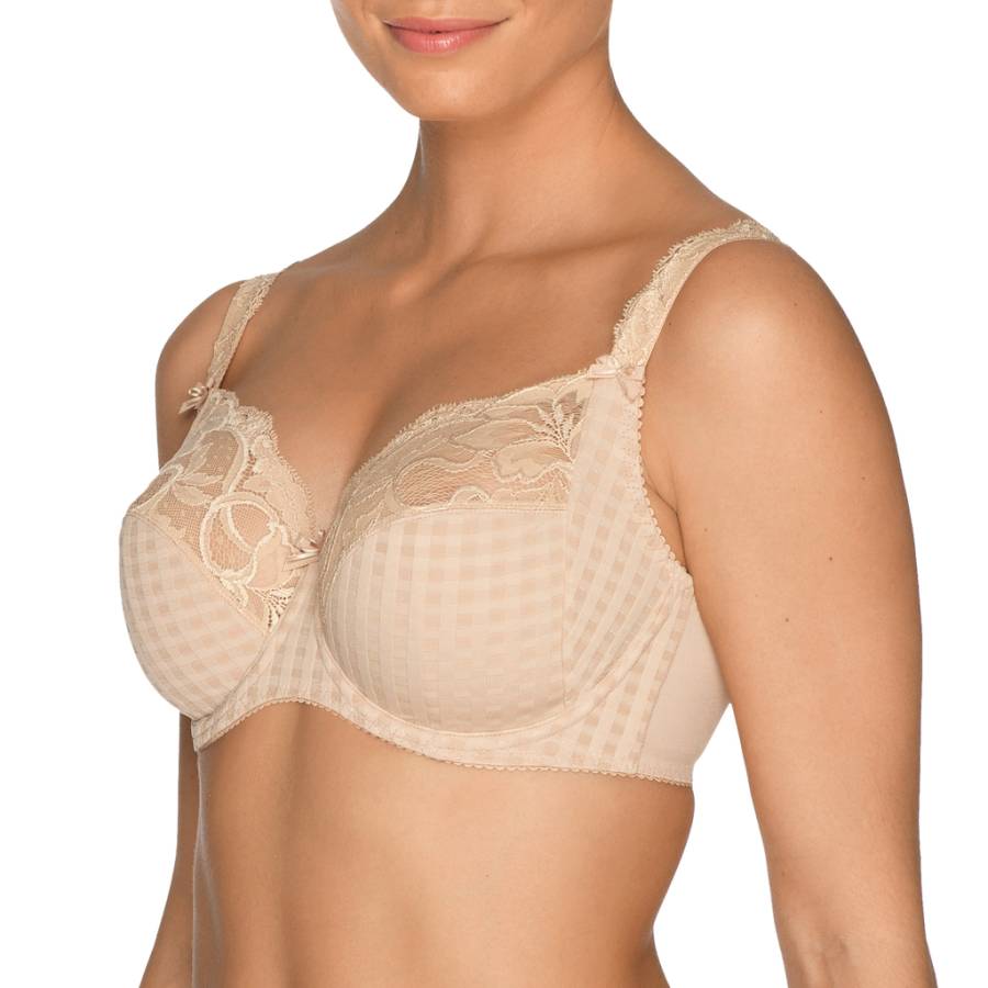 De PrimaDonna Madison beugel BH heeft driedelige cups die de borsten een voorwaartse lift geven, waardoor je slanker lijkt. De bovenkant van de cups zijn gemaakt van luxe, elastisch kant voor optimaal draagcomfort. Tussen de cups en op de schouderbandjes zijn strikjes bevestigd. De Madison is erg populair onder PrimaDonna fans. De combinatie van ruitjes en kant geeft deze serie een jonge en elegante uitstraling. Deze bh is verkrijgbaar in natuur, zwart, huidskleur, rood en wit.
