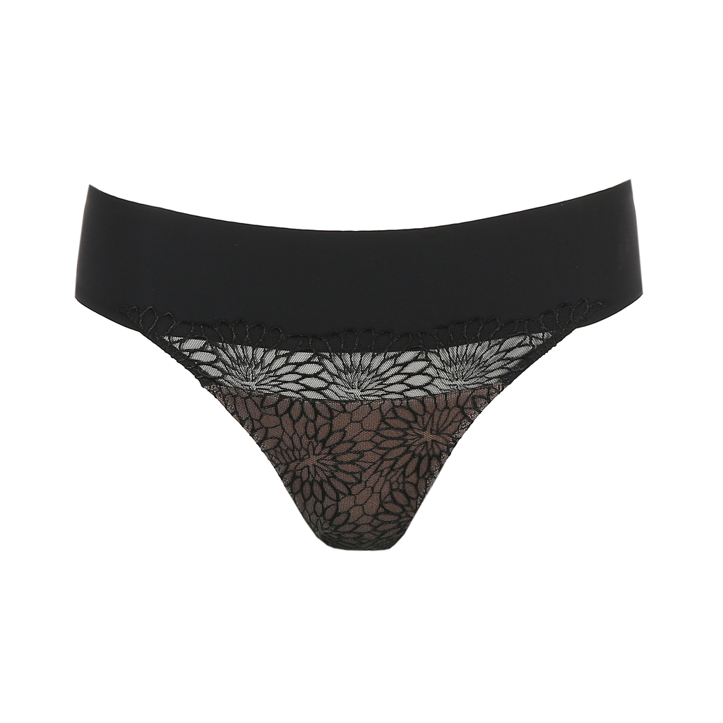 De string van Prima Donna Sophora is elegant en comfortabel. De voorkant is van huidskleurige tule gemaakt en is afgewerkt met een zwarte of witte broderie van bloemen voor een tattoo effect. Verkrijgbaar in zwart en wit.